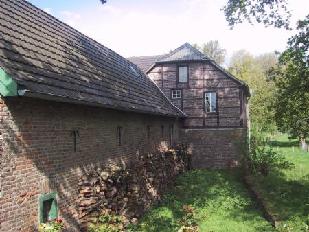 Blick von Nordwesten: links die Mühle, daneben das Wohnhaus von 1715, rechts Wohnhaus von 1800.
